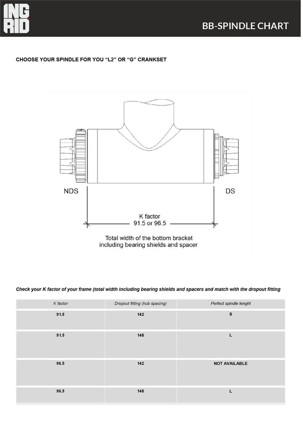 Please make sure to check the BB-Spindle Chart to make sure what spindle fits your frame.