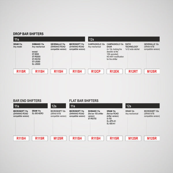 You can drive it with 11s or 12s shifters for drop bar and flat bar, Campagnolo, Sram, Shimano and more