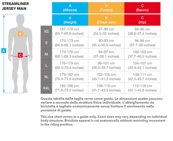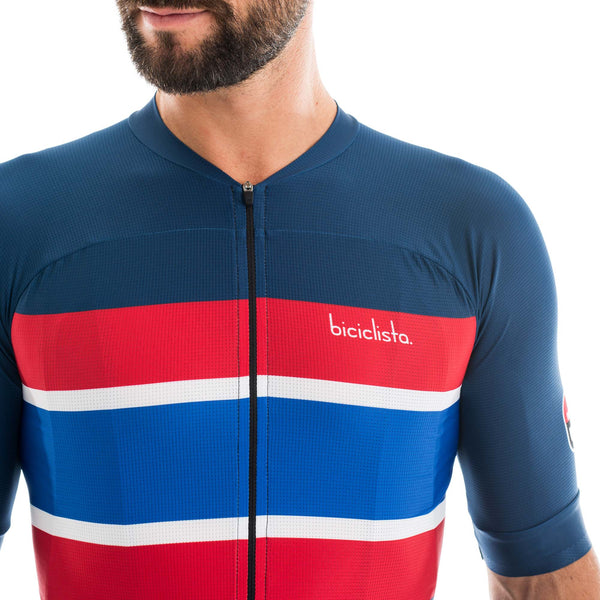 Biciclista Streamliner is the fastest jersey we ever designed. Yes it's so fast we can't believe it! Just wearing it it makes you 9.58% Faster than you ever been.* The whole body is in one piece with no seams for a complete contact with your body to allow the premium fabric we selected for this garment to perform at best. the upper part that integrate sleeves and collar fits like a glove to let you feel ready for the battle. Have we mentioned how fast this Jersey will make you?